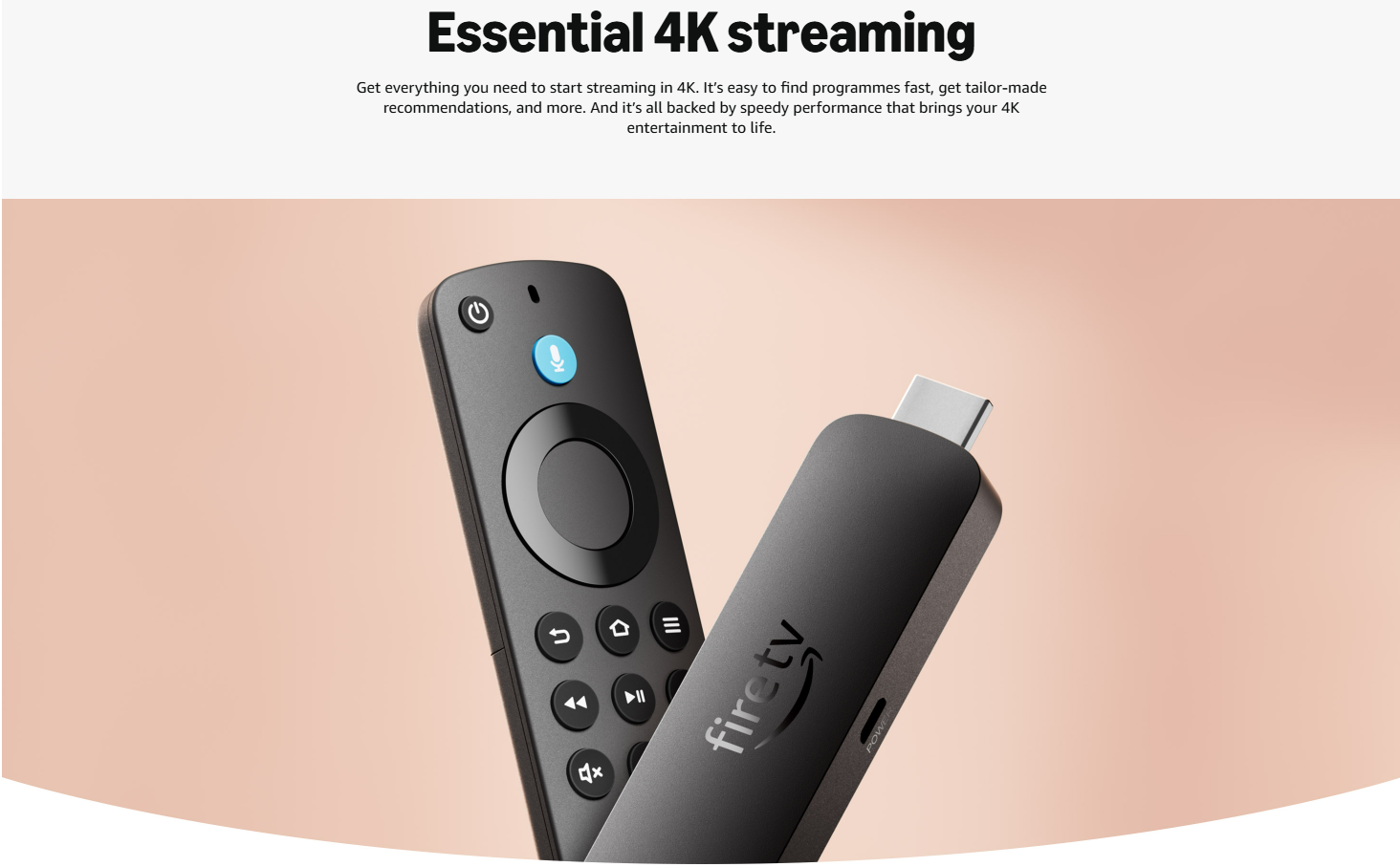 Amazon Fire TV Stick 4K Select (newest gen), start streaming in 4K, hundreds of thousands of films and TV episodes, and free & live TV