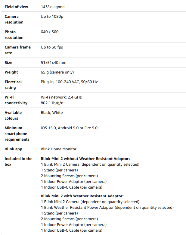 Mini 2 can be used outdoors with the purchase of a Blink Weather Resistant Power Adaptor (sold separately or as part of a bundle). The built-in LED spotlight enables night view in colour for enhanced visibility.