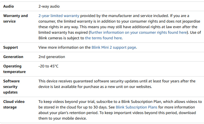- See and speak from the Blink app – Experience 1080p HD live view, night view in colour with a built-in spotlight, a wider field of view, and crisp two-way audio. Stream live video continuously for up to 90 minutes with a Blink Subscription Plan (sold separately).