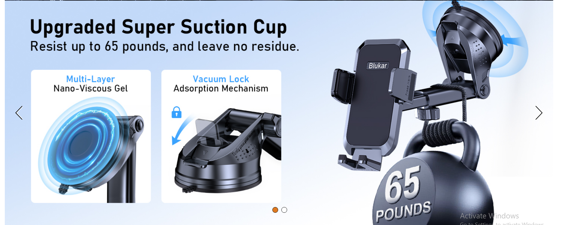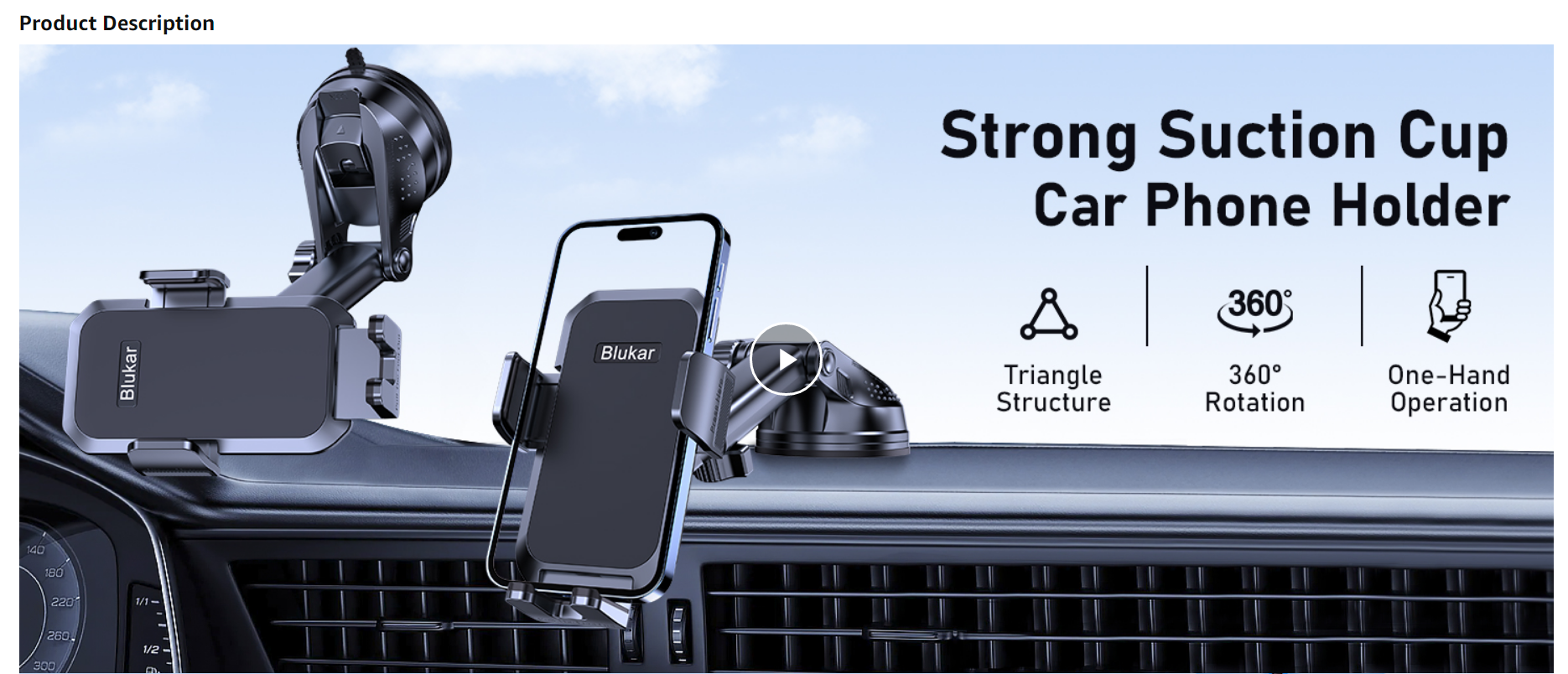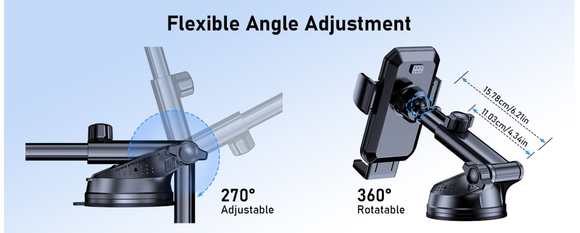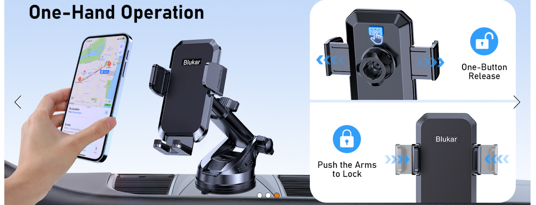 Blukar Car Phone Holder, Adjustable Car Phone Mount 360° Rotation for Dashboard/Windscreen, Upgraded Strong Suction - One Button Release Automobile Cradle for iPhone 4.0''-7.0'' Smartphones
