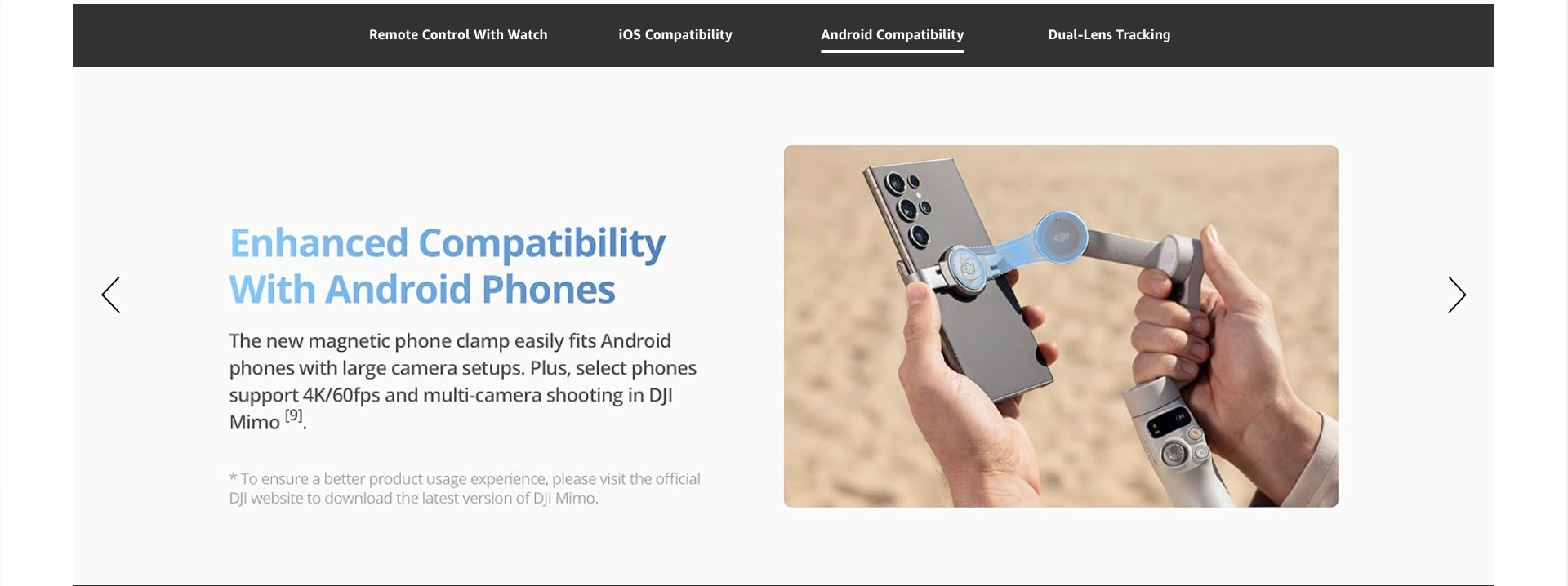 - Stay In Focus - With DJI Mimo's ActiveTrack 7.0, track subjects with your gimbal in more diverse scenarios. No matter how bold your moves, enjoy smooth tracking every step of the way.