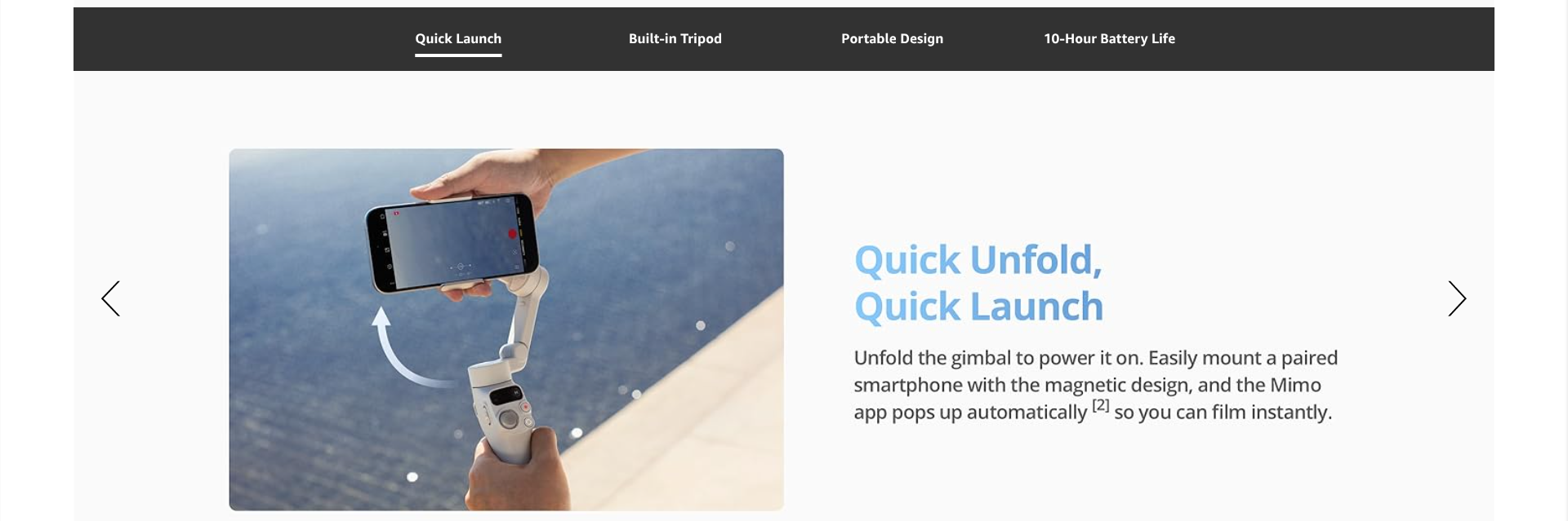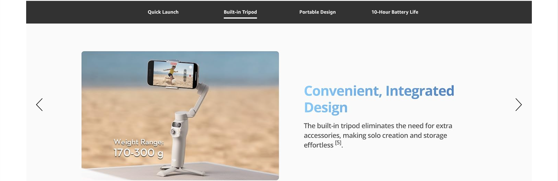 - Streamline Your Creativity - The Osmo Mobile 7 phone gimbal features an integrated foldable design with a built-in tripod [5], making solo creation effortless and storage hassle-free.
