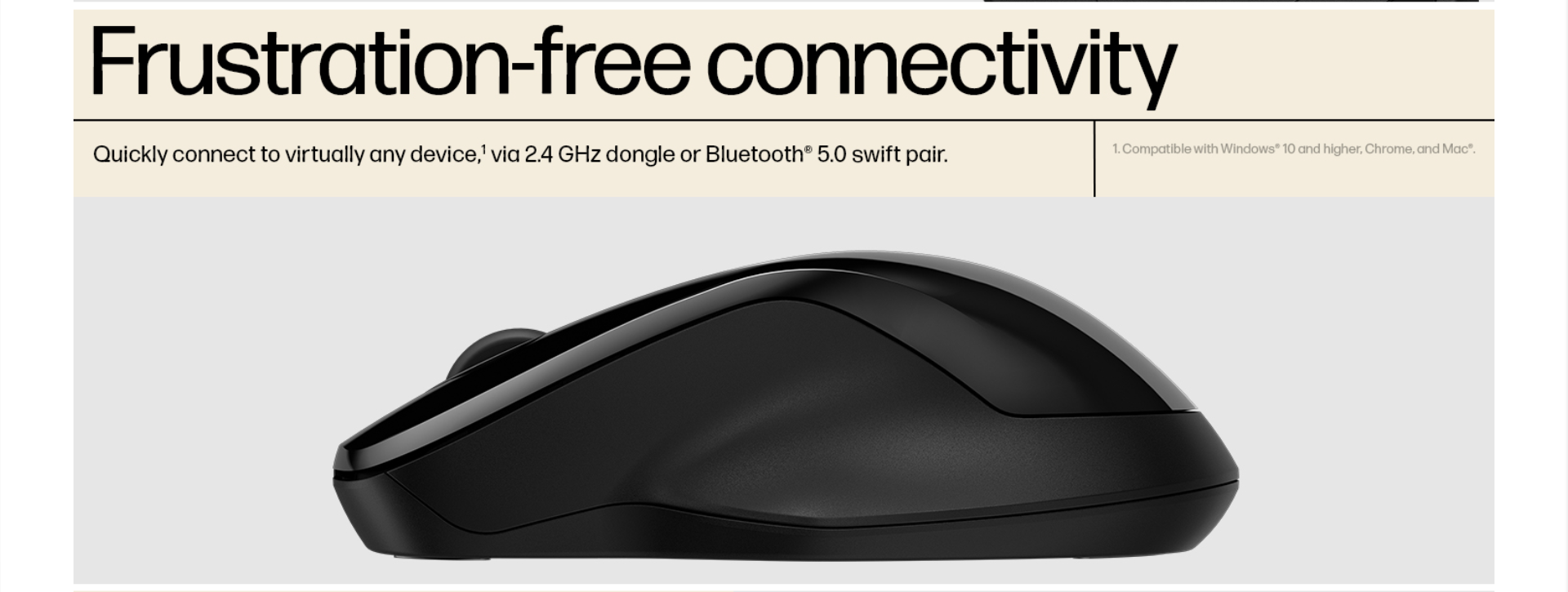 - FRUSTRATION-FREE CONNECTIVITY: With switchable dual-mode connectivity and plug-and-play simplicity, you can now connect quickly and easily to almost any device in the way you want. Choose from 2.4GHz wireless connectivity via a USB-A dongle or Bluetooth 5.0+ wireless. And it’s all compatible with Windows, ChromeOS, and macOS.