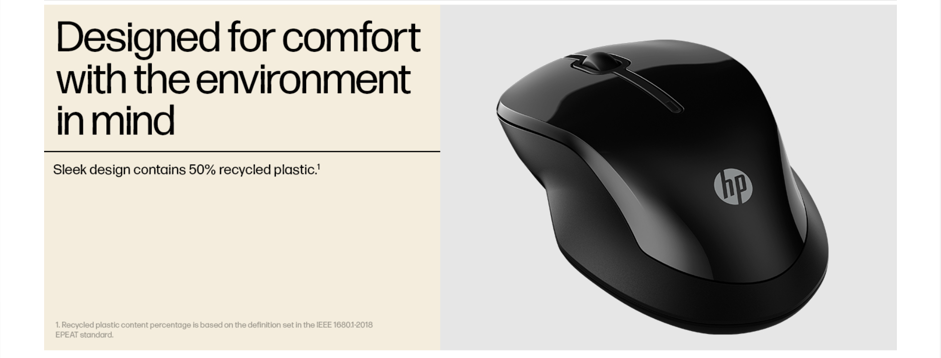 - DESIGNED FOR COMFORT WITH THE ENVIRONMENT IN MIND: Here’s a full-size ambidextrous mouse that not only feels comfortable to use in either hand with its non-slip side grips and quiet click keys. It contains 50% post-consumer recycled plastics and comes in 100% recyclable packaging.