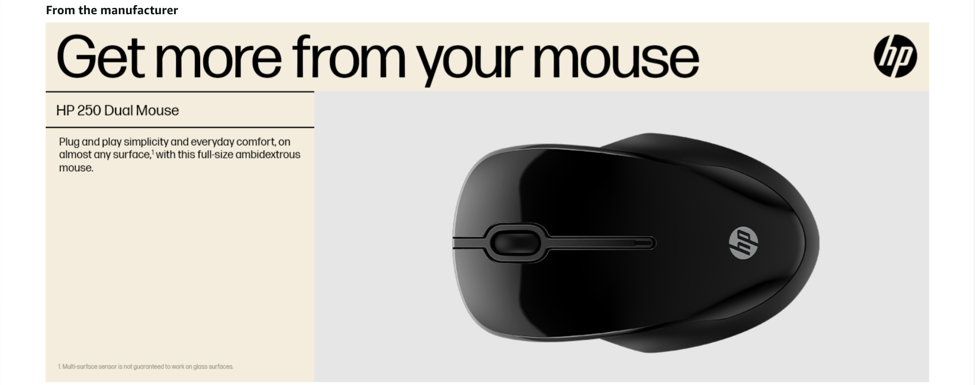 HP 250 Dual Mouse, For Computer or Laptop, Multi-OS & Device Compatibility, Dual-Mode 2.4 GHZ or Bluetooth Connectivity, Multi-Surface Technology, 1 Year Battery Life, Ambidextrous, Black