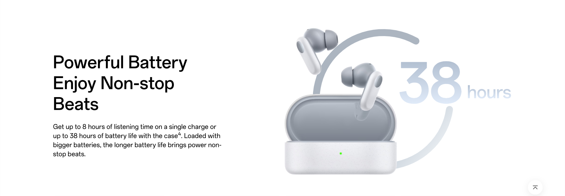 - Battery: 36mAh (earphones) 480mAh (charging case)