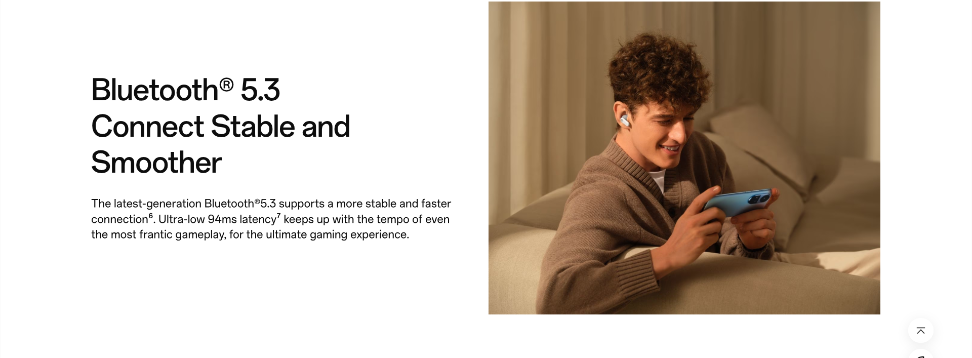 - Bluetooth: 5.3 bineural, low latency, multi-device (matched with 2 devices simultaneously)