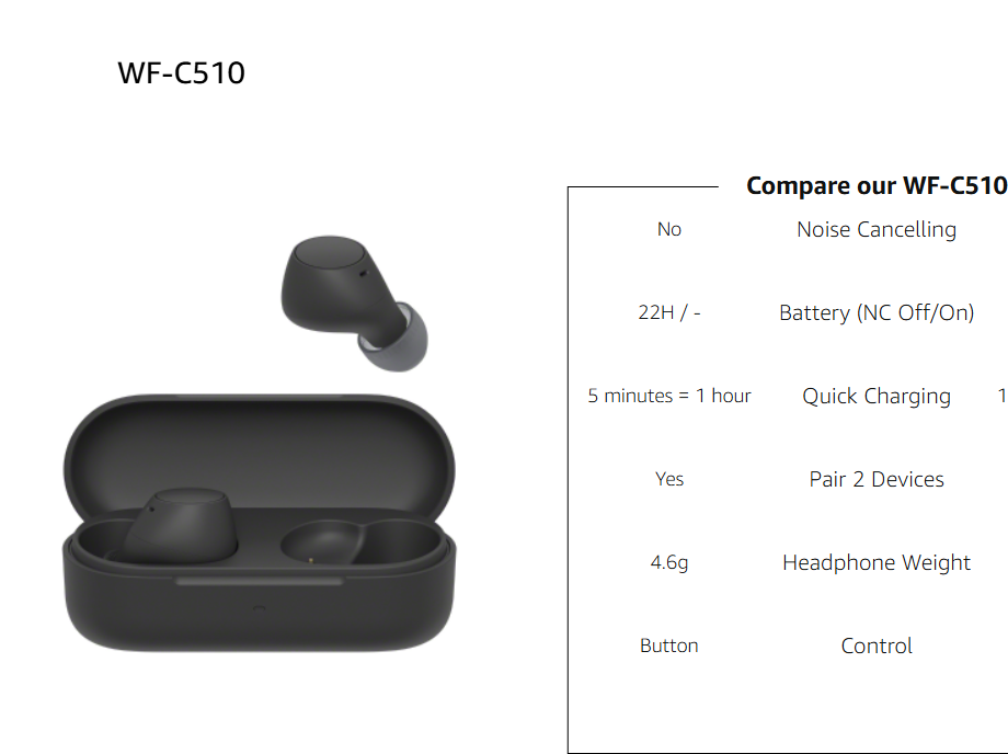 - INTRODUCING THE SONY WF-C510 EARBUDS: Incredibly comfortable, with fantastic sound quality, and packed full of features, these are amongst our smallest and lightest earbuds yet!
