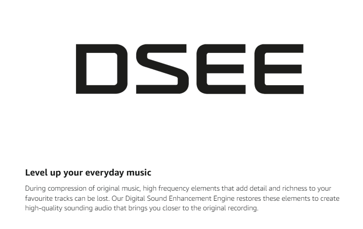 - HEAR EVERY BEAT IN HIGH QUALITY: DSEE upscales each track for authentic vocals and powerful bass, you can personalise your sound in-app, and enjoy our immersive 360 Reality Audio Certified experience