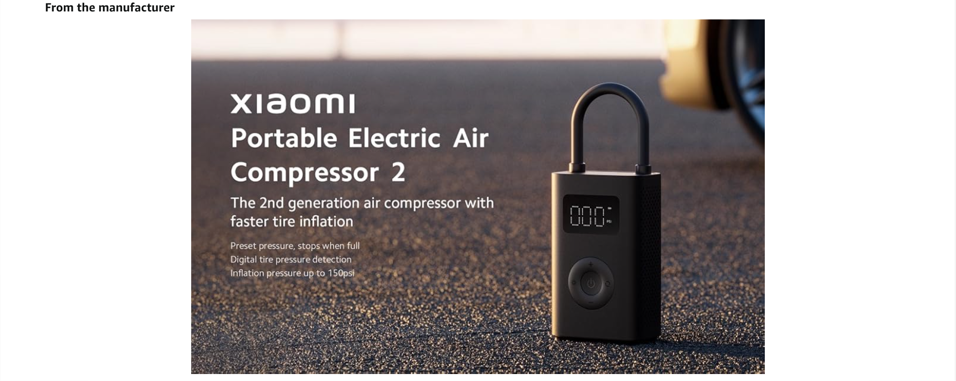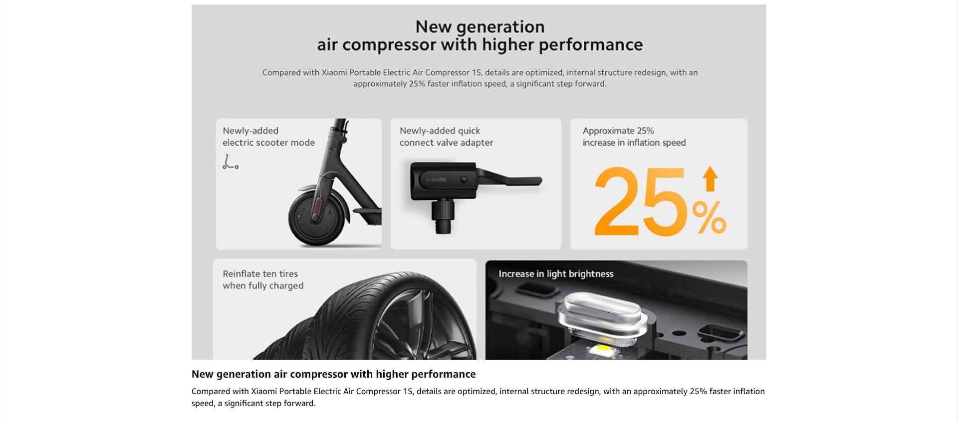 Xiaomi Portable Electric Air Compressor 2,A Faster, Better helpImproved Inflation Performance,