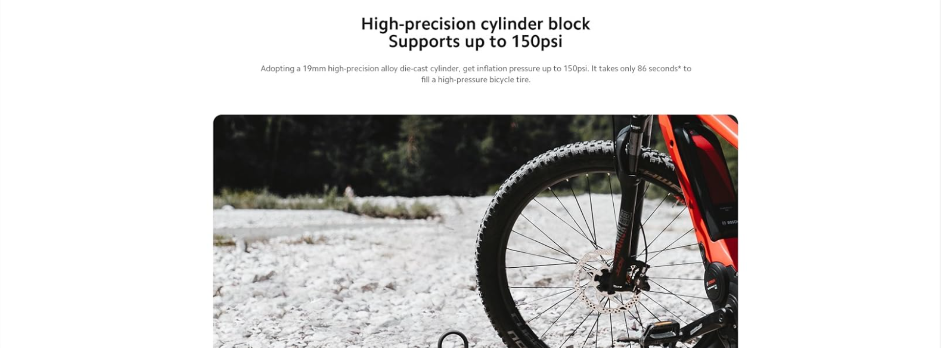- Maximum inflation pressure up to 150 psi. It only takes 86 seconds to inflate a bicycle tyre
