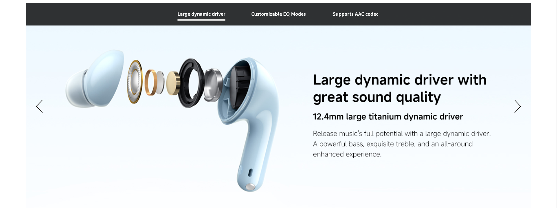 - 12.4mm titanium-diaphragm driver for rich acoustics:Release music's full potential with a large dynamic driver. A powerful bass, exquisite treble, and an all-around enhanced experience.