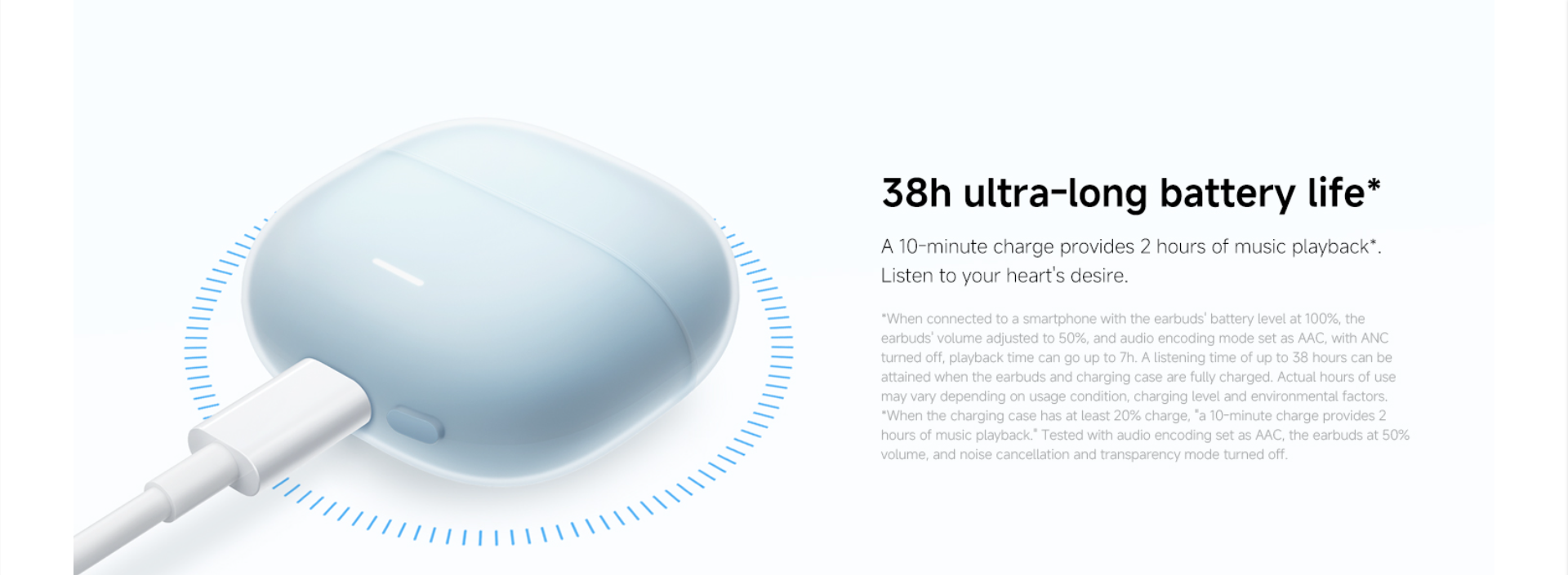 - Up to 38 hours of extended battery life with charging case*:A 10-minute charge provides 2 hours of music playback*. Listen to your heart's desire.